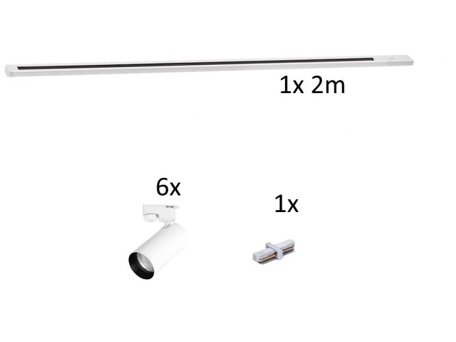 4 x 2 stuks 1 fase 2 draad 100cm rail - materiaal aluminium - bevestiging inclusief - 220-240V - afdichting IP20 - 1 stuk door verbinder - product kleur zand wit en zwart - 6 stuk railspots GU10 armatuur afm. Ø 60 x 120mm draaibaar 350° en kantelbaar 90° - bulb niet inbegrepen - de rail kan eenvoudig op de gewenste lengte worden gezaagd - geschikt voor binnen - SKU 902 SKU 906 SKU 826