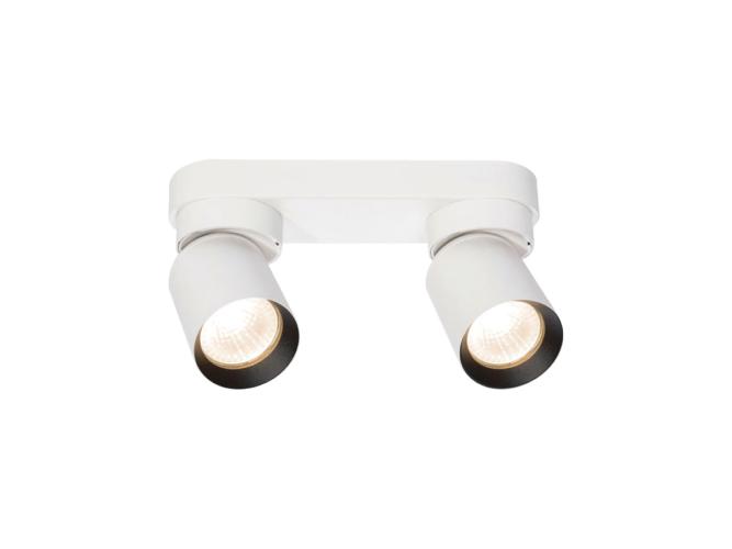 4 x GU10 Opbouwspot Armatuur dubbel cilinder zand wit en zwart draaibaar - afdichting IP20 - product kleur zand wit en zwart ring- afm. Ø 60 x 100mm - afm wandhouder 220 x 60 x 25mm - draaibaar 350° en kantelbaar 50° - materiaal aluminum en ijzer - bevestiging inclusief - fitting GU10 - bulb niet inbegrepen - geschikt voor binnen - 2 x bulb invoer - voltage 220-240V - max 40 watt - SKU 00956
