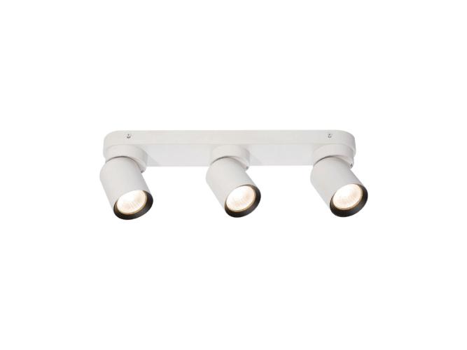 2 x GU10 Opbouwspot Armatuur triple cilinder zand wit en zwart draaibaar - afdichting IP20 - product kleur zand wit en zwart ring - afm. Ø 60 x 100mm - afm wandhouder 390 x 60 x 25mm - draaibaar 350° en kantelbaar 50° - materiaal aluminum en ijzer - bevestiging inclusief - fitting GU10 - bulb niet inbegrepen - geschikt voor binnen - 3 x bulb invoer - voltage 220-240V - max 40 watt - SKU 00960
