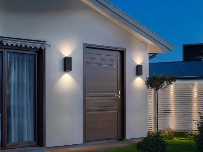 16 x Wandlamp modern rechthoekig GU10 duo fitting zand zwart waterdicht - IP44 waterdicht - afm. 92 x 68 x 150 mm - materiaal aluminum en glas diffuser - bevestiging inclusief - GU10 fitting - bulb niet inbegrepen - geschikt voor binnen en buiten - 2 x bulb invoer - voltage 220-240V - max 2 x 35 watt - SKU 00704