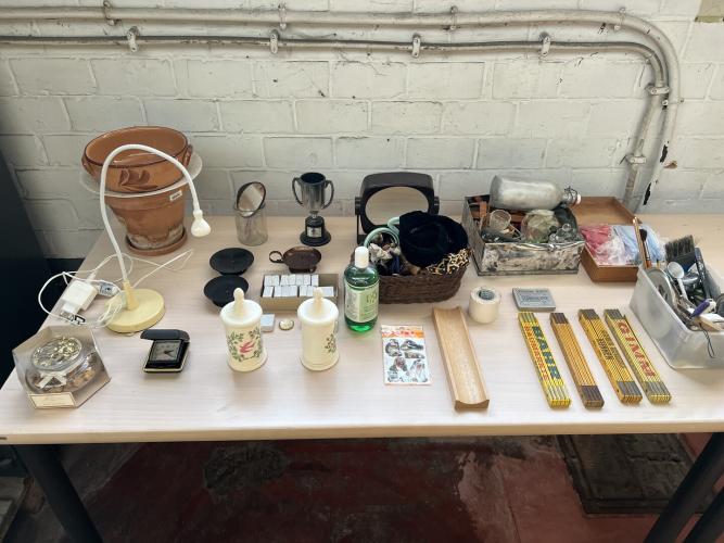 Partij diverse w.o. Bureaulamp en vouwmeters