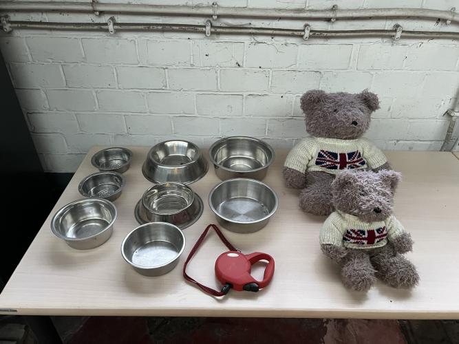 Partij diverse w.o. RVS eetbakjes en Pluchen beren