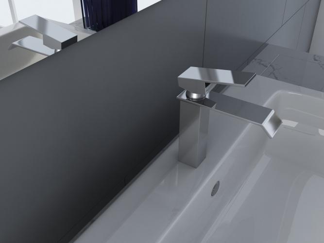 Bijzonderheden: Vierkanten fonteinkraan, verchroomd. De kraan is meermaals machinaal en handmatig gepolijst voor een gladde finish. Ook beschikt de kraan over een goede isolatie.