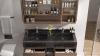 Kleur: Donker hout decor, zwarte wasbak