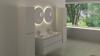 Voorzien van: Touch bediening via digitaal display – LED verlichting in 3 kleuren, dimbaar – Bluetooth & speakers – Digitale klok – Digitale temperatuurmeter – 220 volt aansluiting – Anti-fog technologie door verwarming in de spiegel – Vergrootglas (vergroot 3x) in de spiegel Ø10 cm - Kopervrije spiegel - 1,5mm explosieveilige laag aan de achterkant.