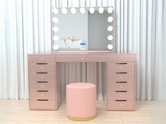 Luxe kaptafel met verlichting - 1500x600x810mm - Roze - Incl. poef