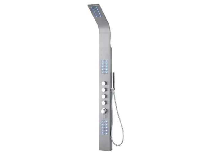 Voorzien van: 3 * LED-verlichting in elk van de sproeierpanelen (24 stuks) - Regendouche voorzien van 24 afzonderlijke kleine sproeiers - 2 Massagepanelen elk met 24 massagesproeiers - Thermostatische mengkraan - Eenvoudige installatie door twee meegeleverde beugels en aansluitslangen.