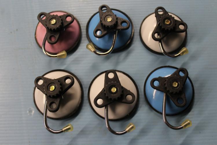 10 x blister met 4 kleurijke stevige handdoekhaakjes (de blisters niet in goeie staat)