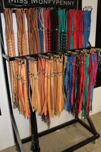 Rek met ±295 hals- en leibanden voor honden