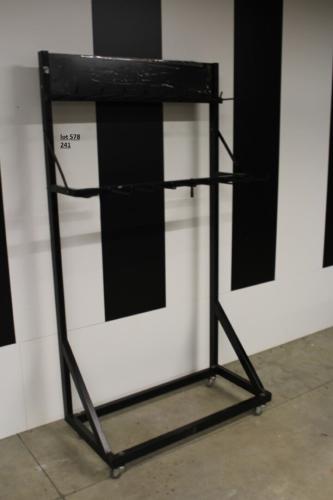 verijdbaar rek op wielen geschikt voor riemen sjaals enz,, afm 1000mm op 1875 mm ( een haak ontbreekt )