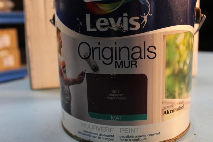 2,5 l muurverf merk ; levis kleur ; dieppaars