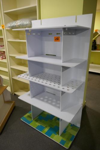 2 houten display of boekenrekken ( 1 staande in de etalage )