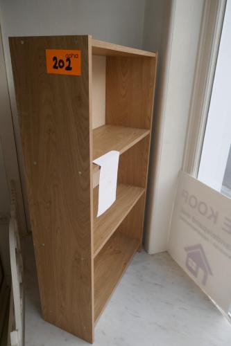 Houten boekenkastje + houten winkeldisplay ( lichte beschadiging hoeken )