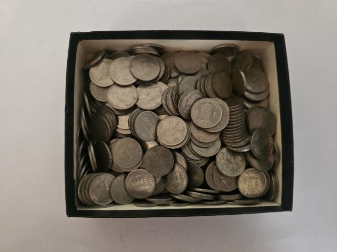 Gemengd lot van Belgische 1-frankmunten uit de jaren 1950–1960. Verschillende jaartallen, ideaal voor verzamelaars of bulk.