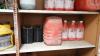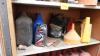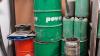 26x jerrycan & rest producten + 5x vat in metaal met pomp