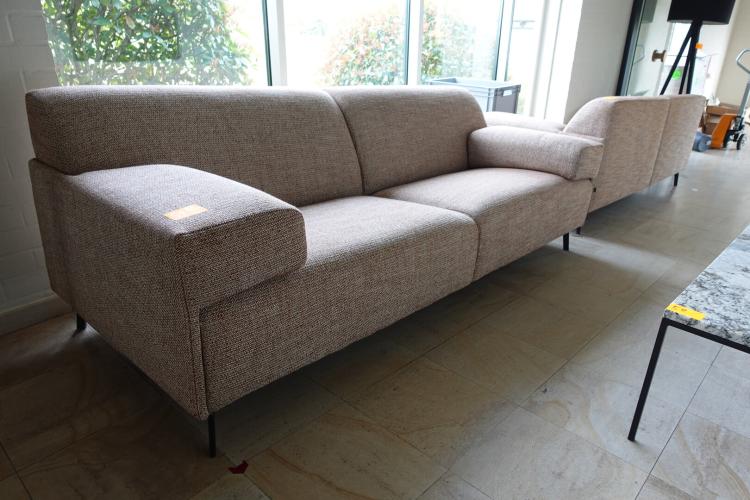2x zitbank in stof 2300x900 2x bijzettafel 1x tafel , lamp
