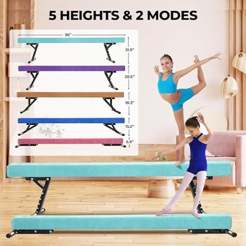 Ongeopend, in seal, kleine beschadiging aan zijkant (zie foto's), SportBob Evenwichtsbalk voor thuis, 244 cm, opvouwbaar, draagbaar, voor kinderen en volwassenen, met antislip rubberen onderkant, voor professionele turners of beginners, B0D226BFP5