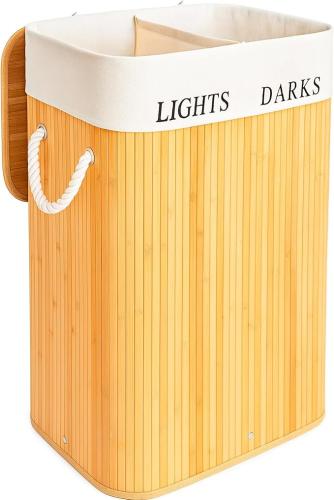 Ongebruikt, ok, Edihome Wasmand met 2 vakken, mand met deksel, 72 liter, emmer, wasmand, opvouwbaar, afneembare wasbare tas, handgrepen, van bamboe (natuur), B0DL65PDZ5