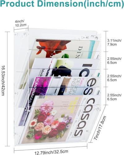 Ongeopend, in seal, Solinxe Hangende tijdschriftenstandaard, wand met 5 vakken, transparant, wandopbergvakken, A4, documentenhouder, krantenhouder, kantoor, school, opbergruimte, organizer, B0FH1XXS6N