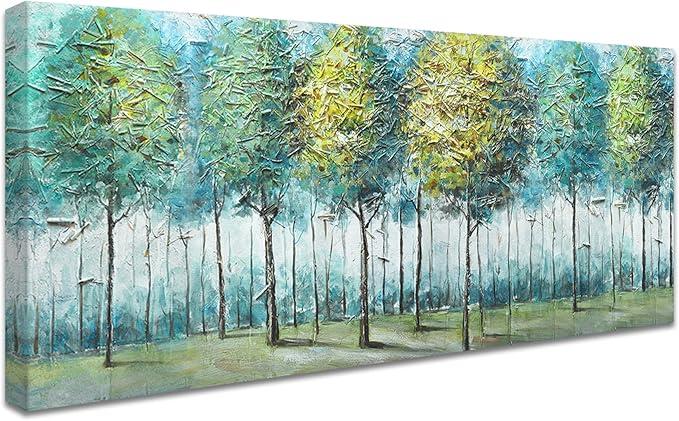 Ongeopend, in seal, Blauwgroene bosboom ingelijste canvasprint Modern landschapsschilderij Canvaskunst Moderne schilderijen Foto op canvas Poster Wanddecoratie Woonkamer Slaapkamer Restaurant 50x120cm, B0D28NKJXK