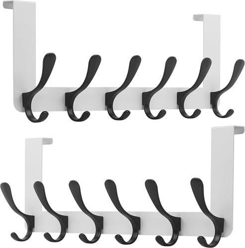Ongeopend, SKOLO Deurkapstok deurhaken, metalen deurhaken om op te hangen met 6 haken, kledinghaken, deur voor handdoekhouder, mantels, 2 stuks, zwart op wit, B09ZPHPB73