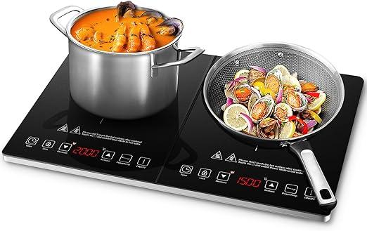Ongebruikt, getest en werkend, volledig, ok, AMZCHEF inductiekookplaat 2 platen, inductiekookplaat dubbel met onafhankelijke bediening, 20 temperatuurniveaus, verschillende vermogensniveaus, 3500W, timer van 3 uur, veiligheidsslot,B0B6RFXPBG