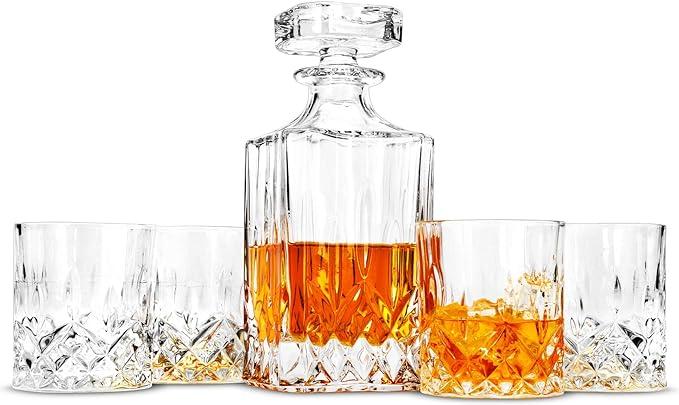 Ongeopend, LANFULA Whisky Glazen en Karaf Set, 750 ml Whiskey Decanter met 4×300ml Whisky Glas, Cadeau Voor Whiskey Liefhebbers, cadeauset , B0892ZVWX2