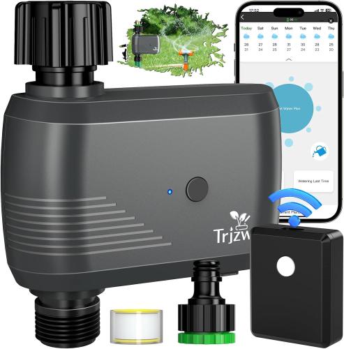 Ongeopend, ok, TRJZWA WiFi-watertimer, nieuwste slimme irrigatietimer met WiFi-afstandsbediening voor tuin-/gazon-/zwembad-/kasbewateringstimer, Hozelock-timer met hoofdbewatering en individuele bewatering in dubbele modus, B0D2D25854