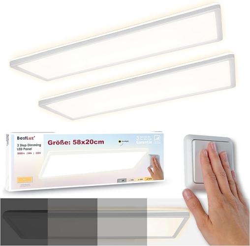 Ongebruikt, getest en werkend, volledig, ok, originele verpakking ontbreekt, licht beschadigde verpakking, BestLuz Led-plafondlamp, rechthoekig, 58 x 20 cm, 24 W, 3000 lm, drie niveaus, dimbaar, led, neutraal wit, 4000 K, met achtergrondverlichtingseffect, badkamer, slaapkamer, woonkamer, keuken (2 stuks), B0DRFCCB7Y