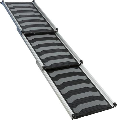 Ongebruikt, volledig, ok, TRIXIE Telescopische loopplank voor honden, gemaakt van lichtgewicht aluminium, loopplank voor huisdieren voor grote auto's en SUV's, eenvoudig verstelbaar, in zilver/zwart, B08B32YPQH