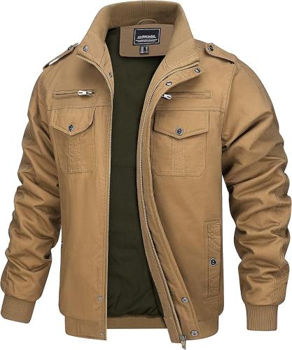 Ongebruikt, ok, MAGCOMSEN Mens lichtgewicht winter herfst katoen casual jas militaire cargo jas en jas met rits zakken, kaki, Large, B07GXLH3G9