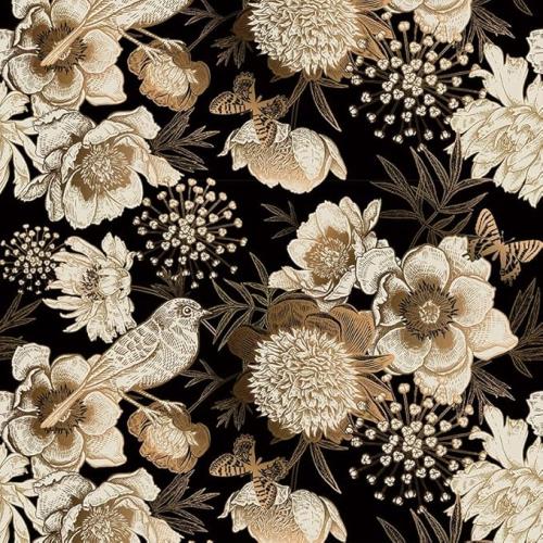 Ongeopend, in seal, 4 x ReWallpaper 44,5 cm x 12 m behang zwart goud zelfklevend fotobehang slaapkamer natuur bloemen folie voor meubels goud patroon vogels, B0CW1M74VN