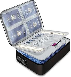 Ongebruikt, ok, Vuurvaste documententas met slot, vuurvaste geldcassette, waterdicht met handgreep, voor reizen en thuis, voor documenten, certificaten, paspoort, B0DPZ1KX34