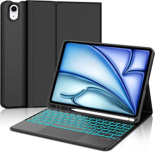 Ongeopend, ok, JADEMALL Azerty-Toetsenbord met trackpad voor iPad Air 11 inch M2/M3 2024/2025, beschermhoes voor iPad Air 11 M3/M2 met toetsenbord, Frans AZERTY-toetsenbord met achtergrondverlichting, afneembaar, B0FDFF5WGS
