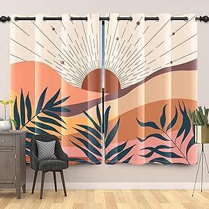 Ongeopend, ok, Gordijnen, abstract, abstracte kunst, terracotta, minimalistisch, landschap, thermische gordijnen, kou, verduisteringsgordijnen met oogjes voor slaapkamer, keuken, woonkamer, raam, 140 x 225 cm, B0BR5B18GB
