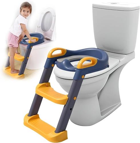 Ongeopend, SilverChry Toiletbril voor kinderen, verstelbaar, opvouwbaar, 2-in-1 toiletbril met verstelbare ladder, antislip, toiletbril voor kinderen, trainer, blauw , B0D2K64C2B