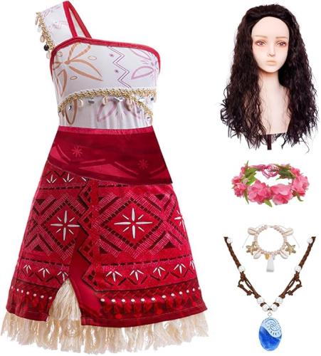 Ongeopend, ok, DGMYFY Vaiana Prinsessenjurk voor meisjes met pruik, fluorescerende halsketting, schelparmband, slinger, kostuum, oceanië, verjaardag, carnaval, kinderen, maat 100, B0DP8PFV9X