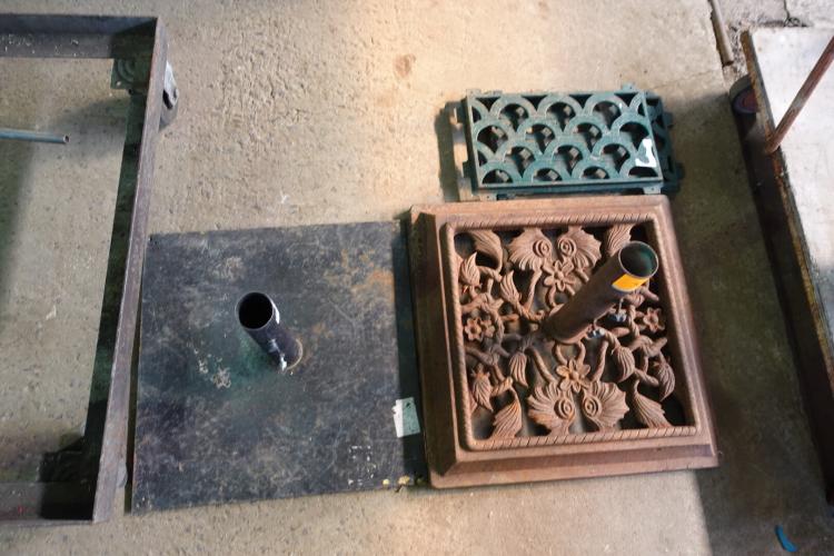 Lot Met Gietijzeren Parasolvoet En Roosters En Parasolvoet