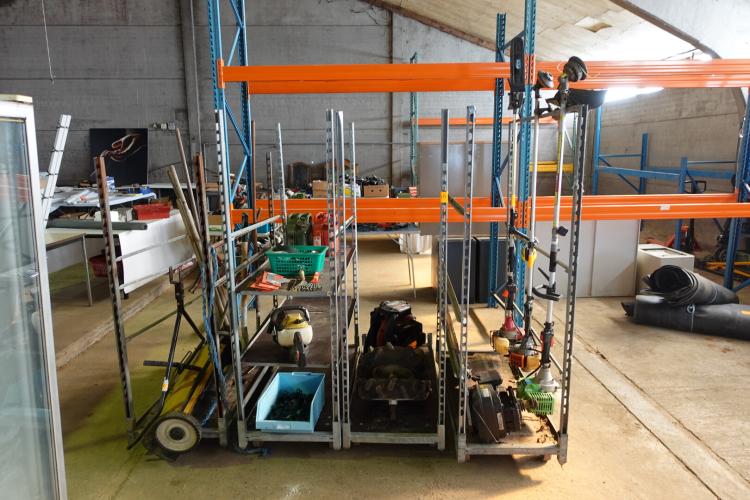 4 Plantenkarren Met Tuinmateriaal (Bosmaaiers, Stokzaag, Haagschaar…)
