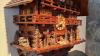 Chaletstijl, mechanisch, werkt met gewichten en kettingen, grote uitvoering, volledig uit hout vervaardigd, met muziekdoosje, 8-dagenklok. Afmetingen: +/- 60 cm B x 65 cm H x 33 cm D.