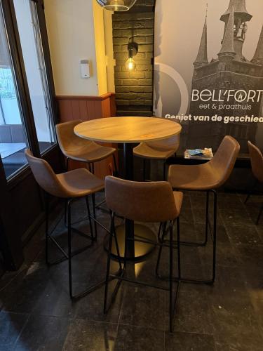 + 1 hoge ronde tafel op zwartmetalen voet - diameter 82 cm
