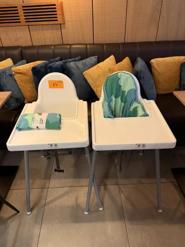 2 kinderstoeltjes met bijpassende babybeschermingen