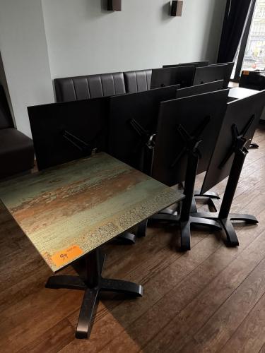 6 inklapbare tafels met een zwart 4-teens onderstel, afm. +/- 70x70