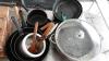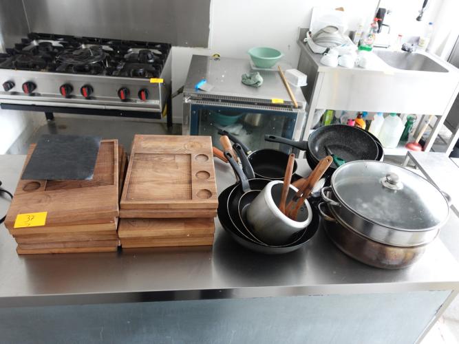 Partij snijplanken + diverse pannen