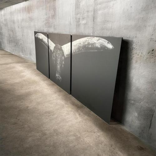 Indrukwekkend 3-luik – COBRA ART - Geprint op een aluminium plaat - Krachtige zwart-wit compositie - Dit unieke 3-luik (3 x 75cm x 100cm )is een echte blikvanger en combineert minimalisme met een krachtige visuele impact. De afbeelding, verdeeld over drie panelen, vormt samen een intrigerend geheel: een majestueuze stier, vastgelegd in een dramatisch zwart-wit contrast. De subtiele lichtval en textuur geven het werk een bijna sculpturale uitstraling. - De panelen zijn strak afgewerkt en sluiten naadloos op elkaar aan, waardoor het kunstwerk zowel modern als tijdloos oogt. Perfect geschikt voor een hedendaags interieur, kantoorruimte of galerie. Komt met COA.