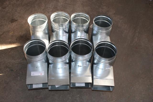 Ongebruikt, 8 x Mecano T 90° horizont.van rond naar rechth.55x110 Ø125