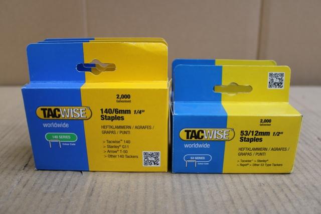Plm 5 stuks, Ongebruikt, Partij TacWise Vlakdraadnieten, 2 x 53/12 mm per 2000 st + 3 x 140/6 mm per 2000 st