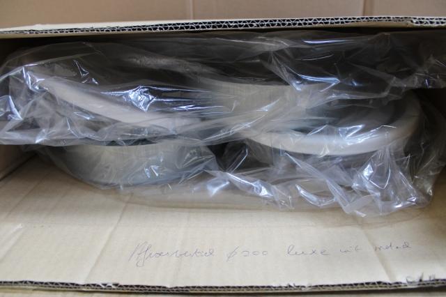 Ongebruikt, 2 x Afvoerventiel Ø200 luxe in wit metaal RAL9010