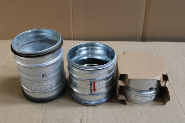 Plm 10 stuks, Ongebruikt, Partij terugslagkleppen, 3 x Terugslagklep met dichting Ø125 + 2 x Terugslagklep met dichting Ø180 + 5 x Terugslagklep Ø125