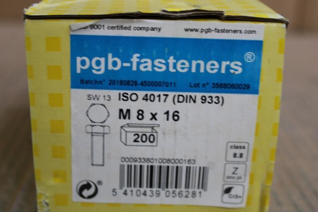 Ongebruikt, PGBfast Zeskanttapbout 8.8 DIN 933 M 8x16 Zn/200